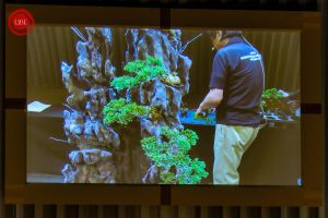 Hicimos un paréntesis. Subía al escenario el ganador del primer concurso de este fin de semana, y hasta donde nosotros recordamos el único concurso. La prestigiosa revista BONSAI FOCUS había organizado un concurso cuyo premio consistía en el viaje a Japón. Había sido un concurso fotográfico. ¿A quién correspondería dicho honor? No podía ser otro. Mario Komsta apareció en escena. ¡Había recibido el primer premio!